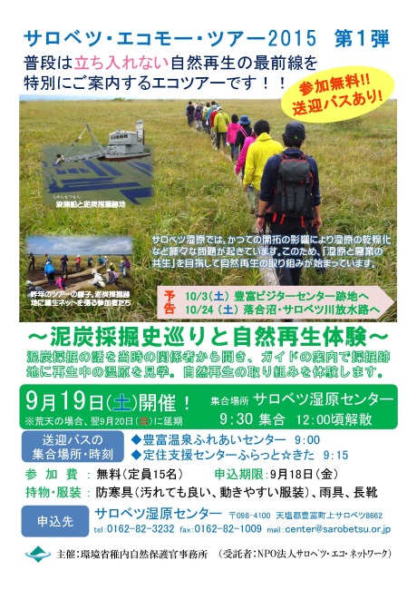 【案内】サロベツ・エコモー・ツアー2015 「泥炭採掘史巡りと自然再生体験」のご案内