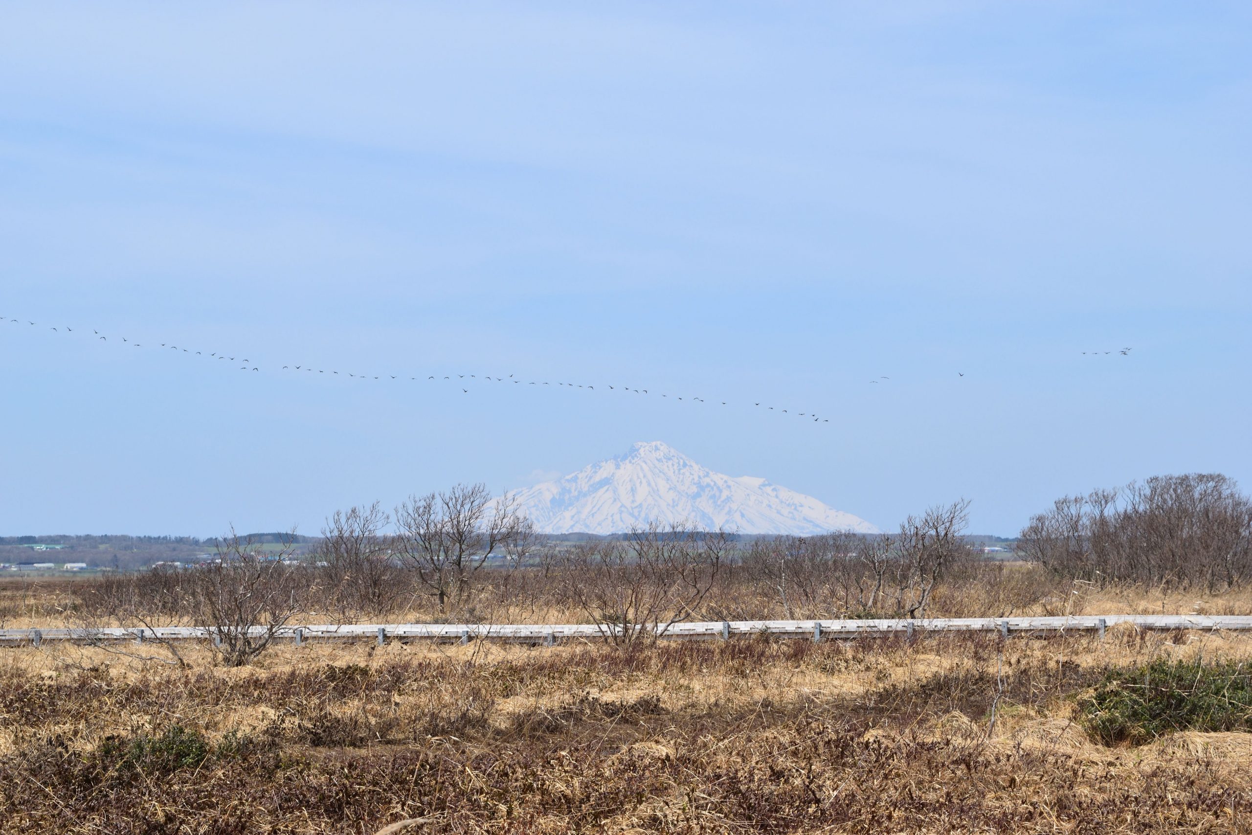 個人的に山肌のはっきりしている春の利尻山とガンの群れは冬の終わりと春の訪れを感じます。